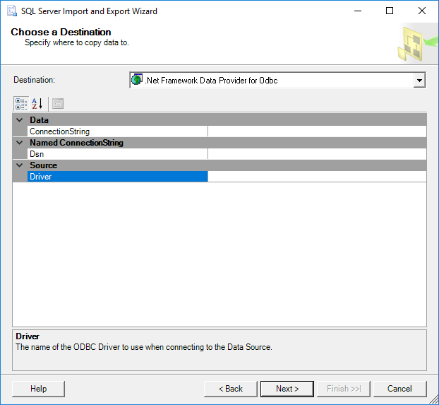 Options that will be shown on the SQL Server Import and Export Wizard pages depend on the selected data source in the Data source combo box.