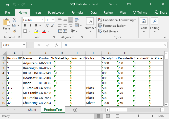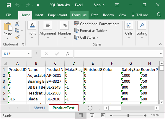 To verify that the SQL Server Import and Export Wizard successfully has exported data to the Excel file, find and open that Excel file, in our case that is the SQL Data.xlsx file: