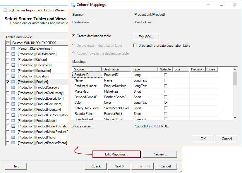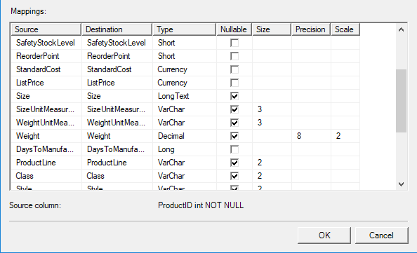 By clicking the Edit Mappings button, the Column Mappings dialog will appear: