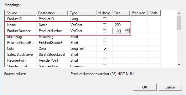 In the Nullable column, it can be specified whether the destination column allowed a null value or not.