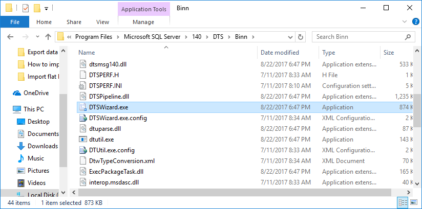 Or, type the following C:\Program Files (x86)\Microsoft SQL Server\140\DTS\Binn DTSWizard.exe for the 32-bit version.