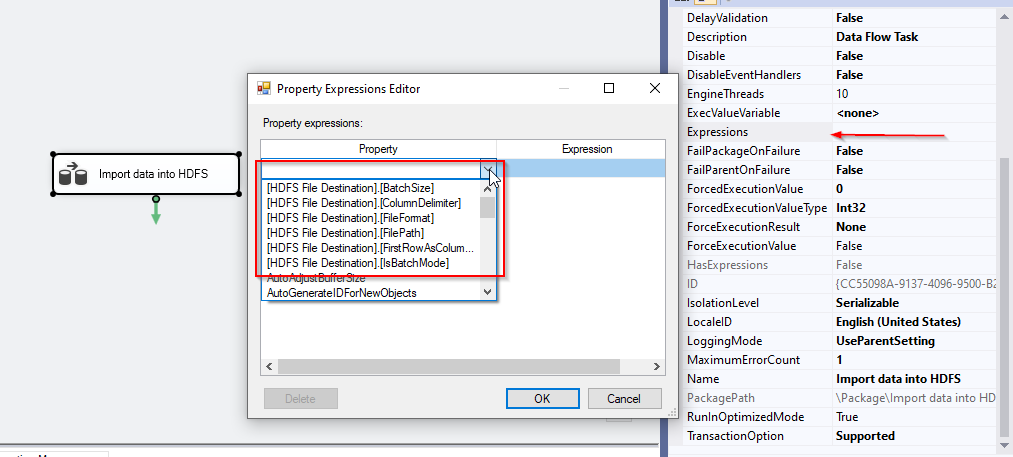 There are some properties of the HDFS file destination that can be evaluated as an expression. These properties are: