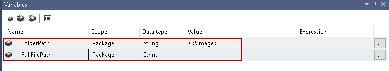 Define the variables as shown in the below screenshot. In the ‘FolderPath’ variable, you can notice the value ‘C:\Images’. It is the folder in which we have all the files placed as of now.