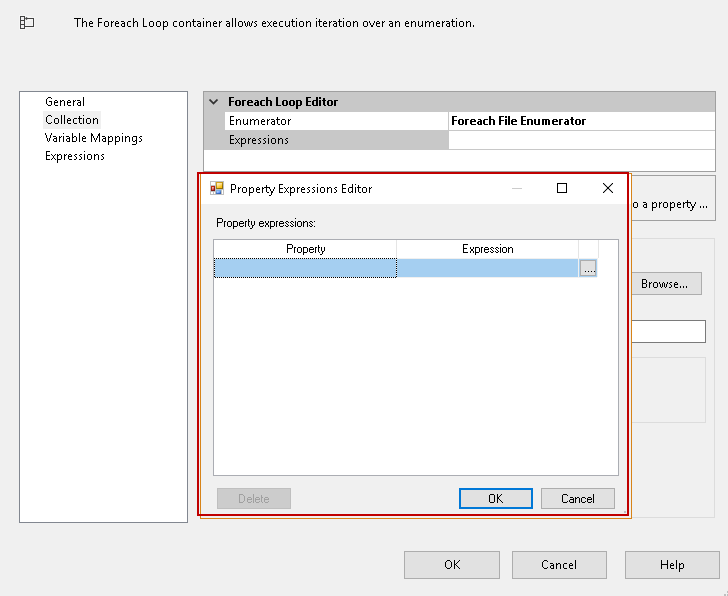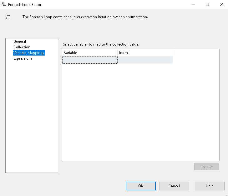Click on ‘Ok’, and you can see the below ‘Foreach loop editor’ window.