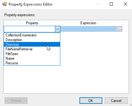 In this property expression editor, select the ‘Directory’ from drop-down values.