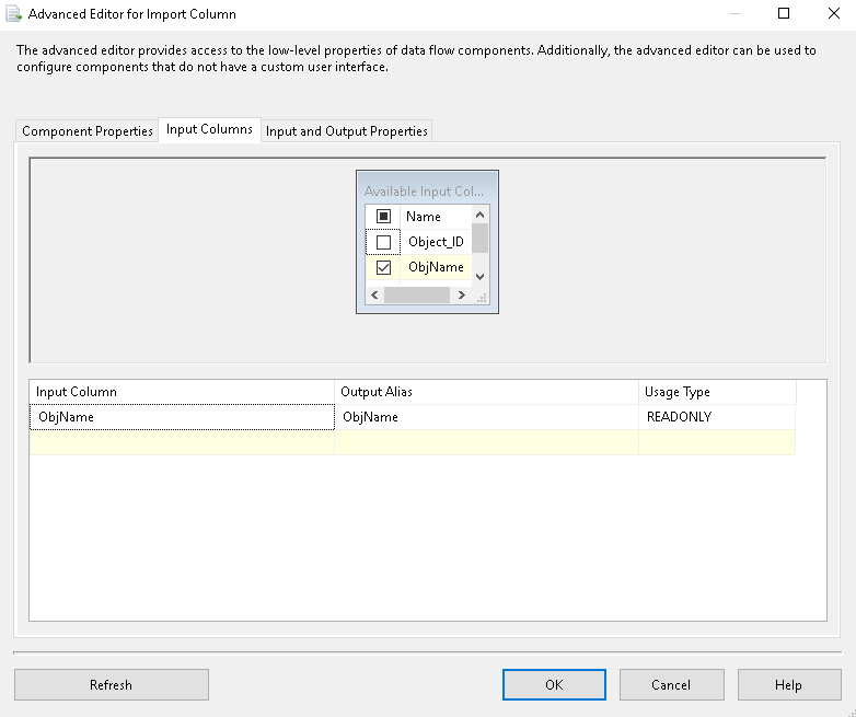 Expand the Import Columns Output and Click on the Add Column to do the transformation. In the Import Column Output, add a new column and select datatype DT_IMAGE. This data type is useful for FILESTREAM objects.