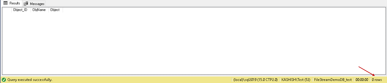 Before we execute the package, verify that we have an empty FILESTREAM table.
