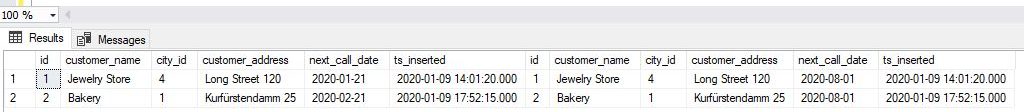 12UPDATE TOP(1) customer SET next_call_date = '2020/08/01' WHERE id = 1;UPDATE TOP(1) customer SET next_call_date = '2020/08/01' WHERE id = 2;