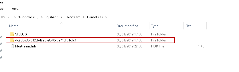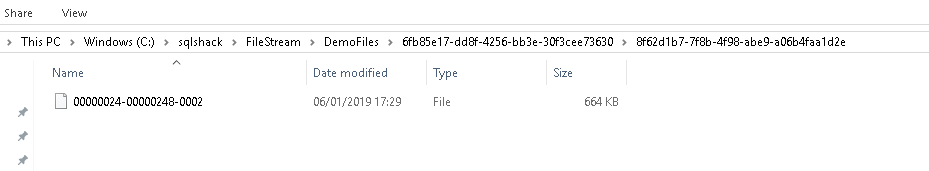 You can verify the container in the FILESTREAM file path ‘ C:\sqlshack\FileStream\DemoFiles as per our demo.