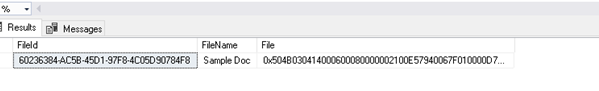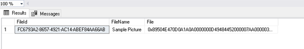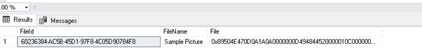 We can select the records from the demo table. In the ‘File’ column you can see that the image is converted into the varbinary object.