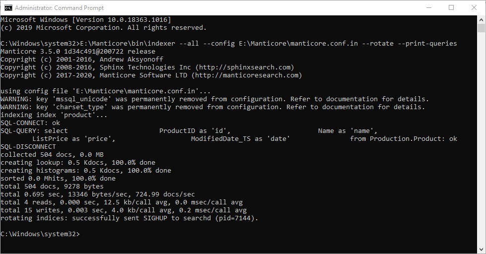 In the rest of this article, we will show how to install the latest version of Manticore (3.5.0) on Windows and how to build full-text indexes from SQL Server tables.