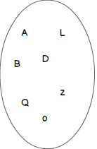 You will find an example of representation for a single set and its objects in following figure. This set contains the following objects: A, B, D, L, o, Q and z.