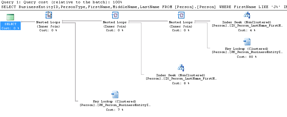 Now, let’s look at a concrete T-SQL example where A is the set of persons with firstname starting with a « J » and B is the set of persons with lastname starting with a « E ». A∩B is the set of persons with « J. E. » as initials.