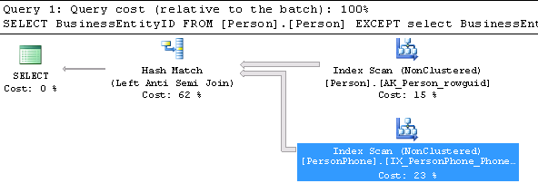 SELECT BusinessEntityID FROM [Person].[Person] EXCEPT select BusinessEntityID from Person.PersonPhone |