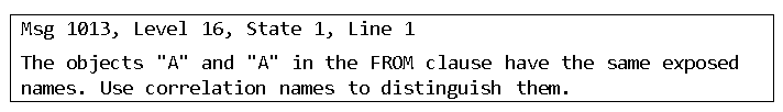 - If we would like to cross join A with itself, we would get following error message except if we provide an alias for at least one of table A occurrences.