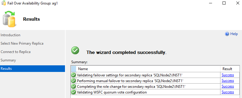 In a distributed availability group, we can do a manual failover. It does not support automatic failovers because the replicas are in different clusters. Let’s perform a manual failover for distributed AG.