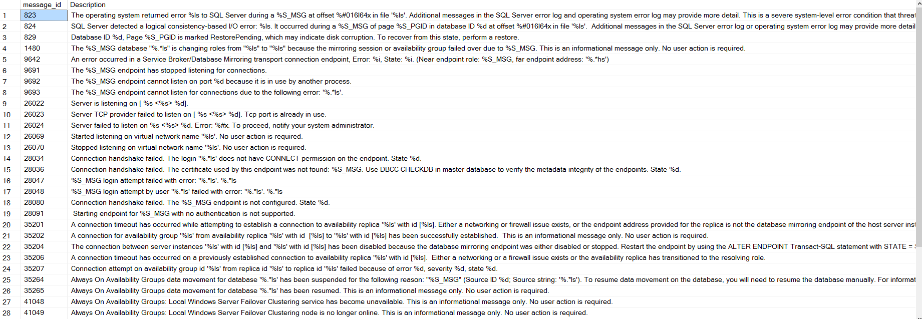 It tracks various error numbers to find out the connectivity errors for availability group endpoints. You can query the sys.messages table to check the description for these different error id’s.