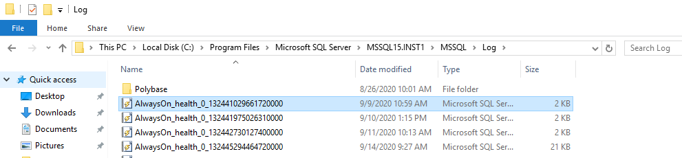 Open the Alwayson_health extended event properties and navigate to Data Storage. By default, it stores the collected data in an event file. This event file gets created in the instance log directory.