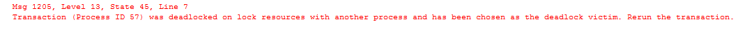 This is the TSQL for the session which was chosen as the deadlock victim and didn’t complete its processing.ProcessTSQL