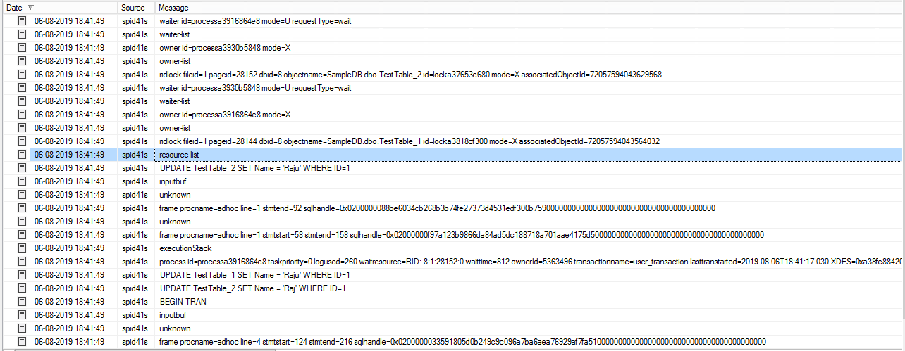 Execute this query, and you get the following deadlock information. You can click on each deadlock report and view the XML information. Save the required XML deadlock report in XSD format, and it gives the graphical execution plan after performing steps similar to mentioned above.