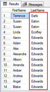 Now, if I run the above query, we’ll see that all the names coming back do not have an A, B, C or D as their first character.
