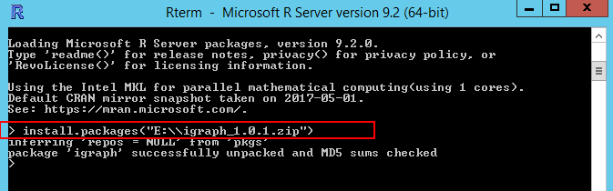 Again, assuming that you are already familiar with R package installation in SQL Server, the installation of igraph R package should be straight-forward as shown in Figure 4.