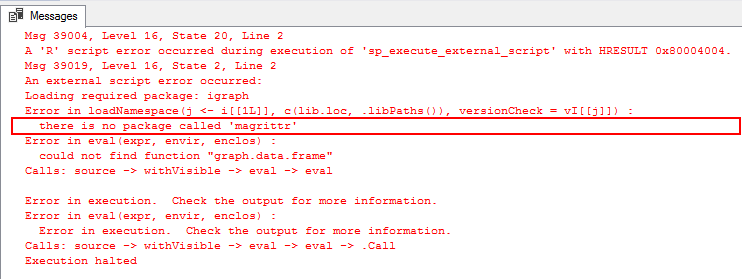 Having the igraph package is not enough as you may still run into the error message shown in Figure 5 when trying to execute your R script. Lastly, in addition to successfully installing igraph R package, you may also need to install the magrittr R package as the igraph R package requires it.