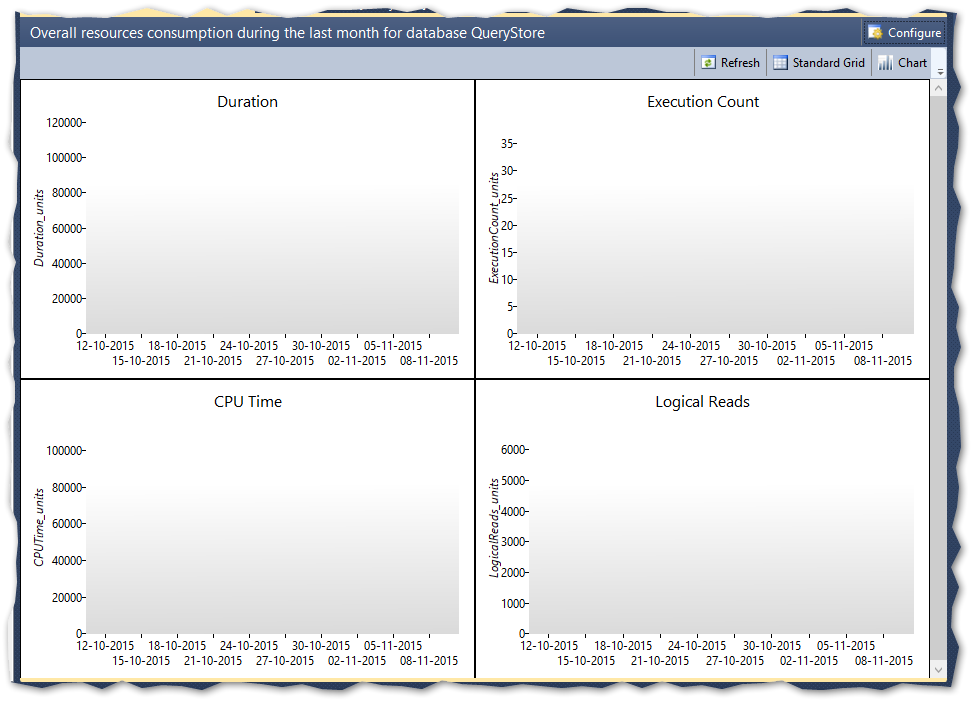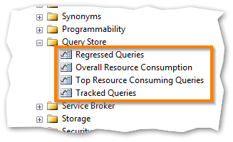The Query Store comes with 4 standard reports as shown below: