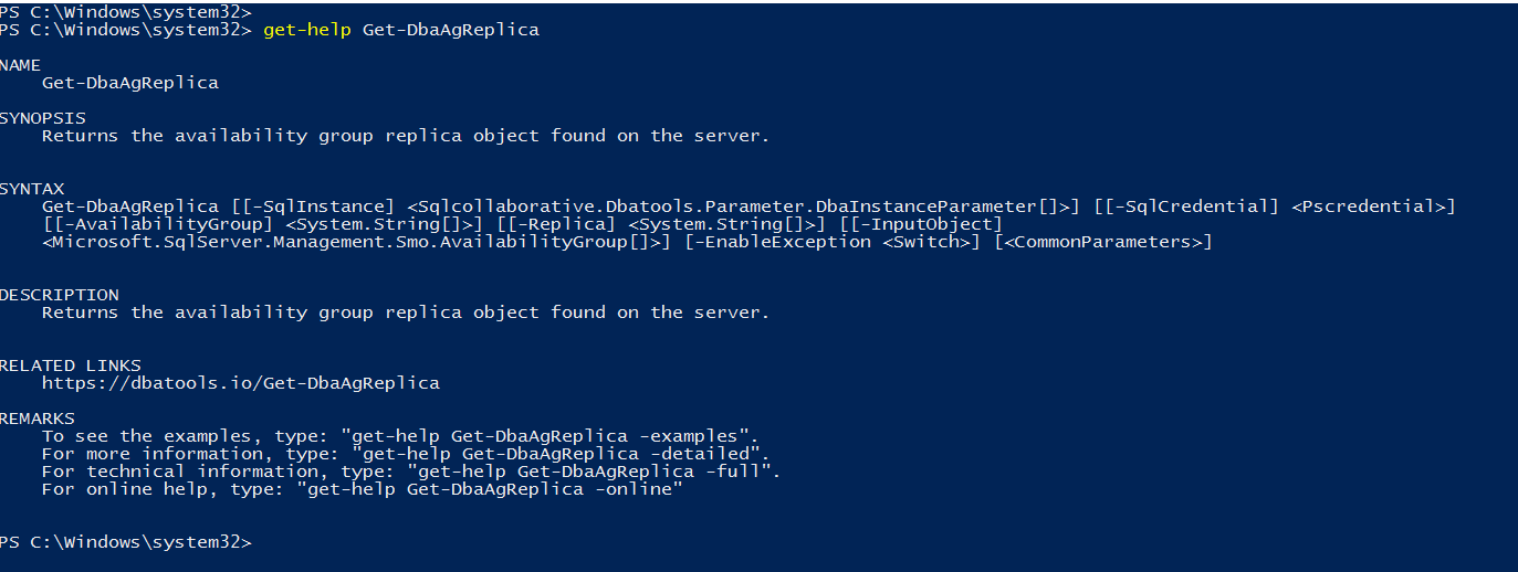 Once we have installed the DBATools in the system, you can try exploring the commands for SQL Server. Here, I specify a few useful commands for availability groups.