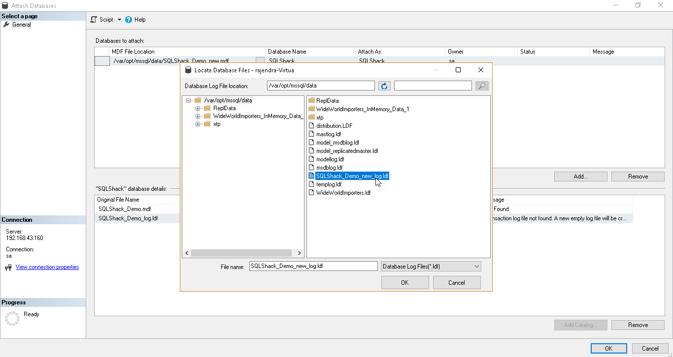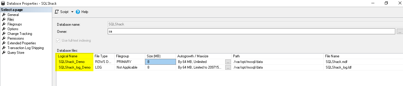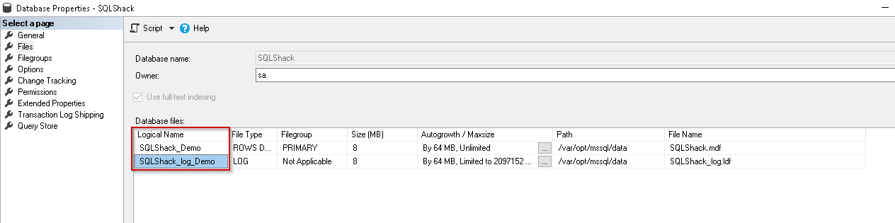 - SQLShack_log.ldf to SQLShack_Demo_log.ldf