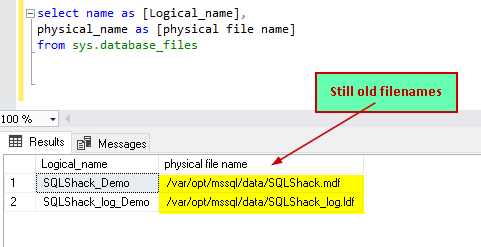 # mv SQLShack_Demo.mdf SQLShack_Demo_new.mdf