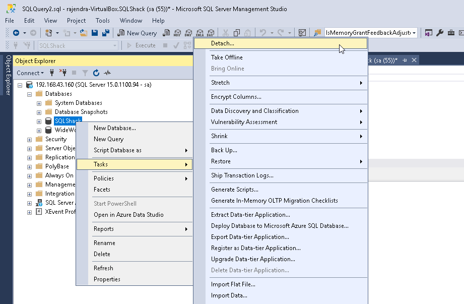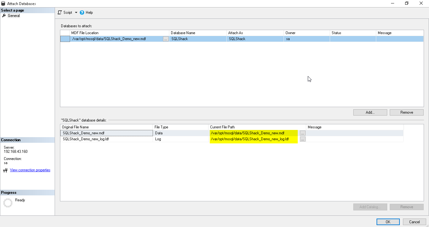 Let us change the physical file name of the ‘SQLShack’ database using the detach and attach method. We can use it for SQL Server on Linux as well.