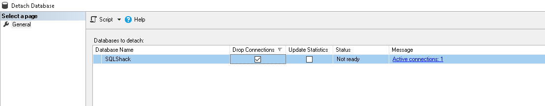 Once the script is executed successfully, we can see the database ‘SQLShack’ in an offline state.