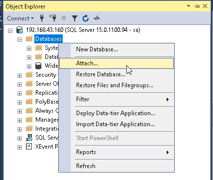 Once we have changed the file name, attach the database using SSMS ‘Attach’ wizard.