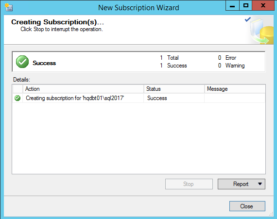 In the Creating Subscription(s)…page should show that the process has been successful or not.