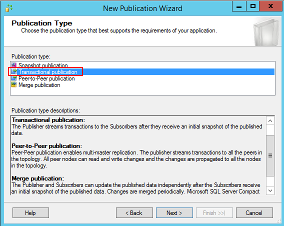 Once you’ve configured the Distributor, you can create a publication. Let’s follow the steps:
