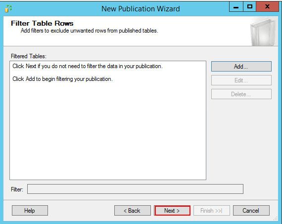 Next, in the Filter Table Rows page, define filters that should be applied to your articles. Let us go with the default values.