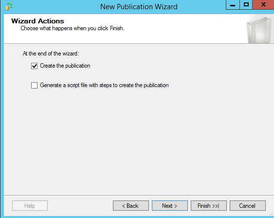 In the complete Wizard Actions page, you’ve two options. You can create the Publication immediately or save the configuration in the script file to run at a later time.