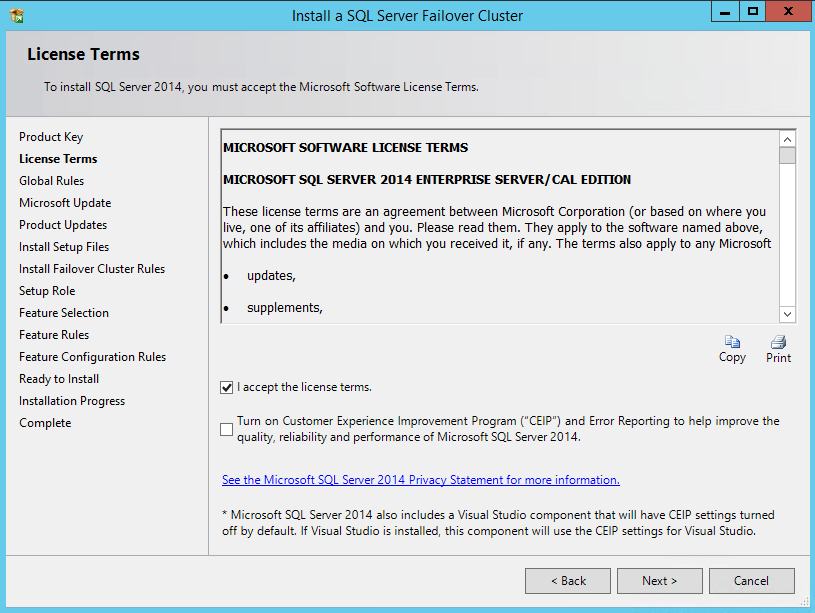 Now we need to fill the SQL Server Network Name. Do you remember that computer name that I referred in the beginning of this article? I’m talking about “SQLSRVCLT01”. It’s time to use it! Fill the network name and proceed to the next step.