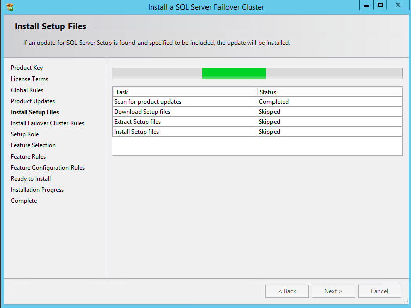Now the wizard will check if the server where you are installing the instance has guaranties the Global Rules prerequisites. If you pass on all the tests, SQL Server will just proceed to the next step automatically.