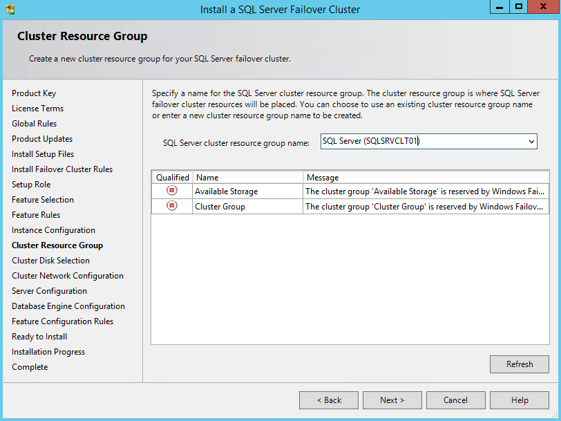 Now we need to set the cluster resource group name related to this instance. I usually change it by reflect the instance computer name, instead of the ID. Click Next.