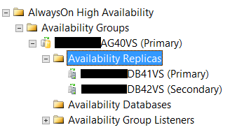 The below snapshot from SQL Server Management Studio shows the created availability group with the two replicas; the primary and the secondary:
