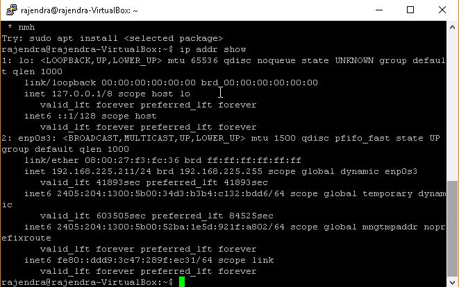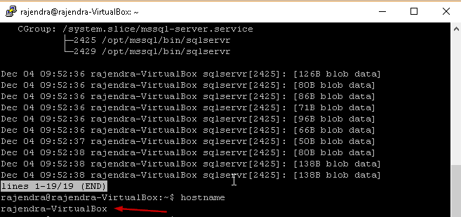 Check the hostname using the command ‘hostname’ in Linux. Our hostname is ‘Rajendra-VirtualBox’