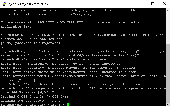 4. sudo add-apt-repository “$(wget -qO- https://packages.microsoft.com/config/ubuntu/16.04/mssql-server-preview.list)”