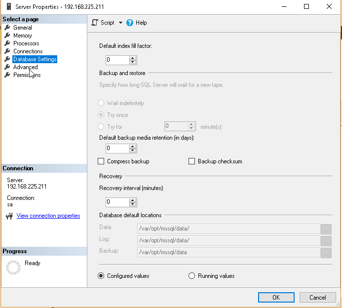 View the database file location. You can see here that all the database files are moving to /var/opt/mssql/data directory.