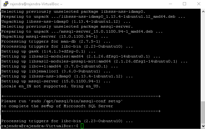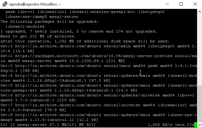 Once dependency is installed, it installs the mssql-server package. You can see details progress message about each component.