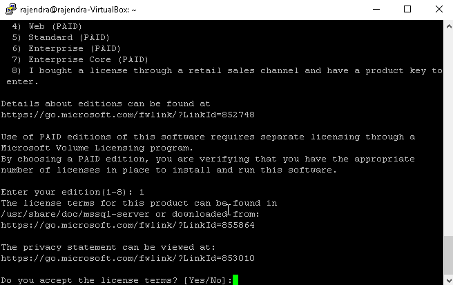 2. Next part is to accept the license terms. Provide the input as Yes or No.
