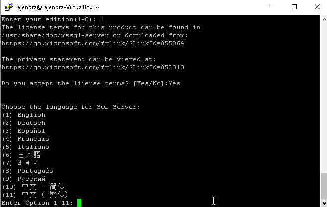 3. Third input required is the language for the SQL Server. Enter option 1-11 from the list shown.