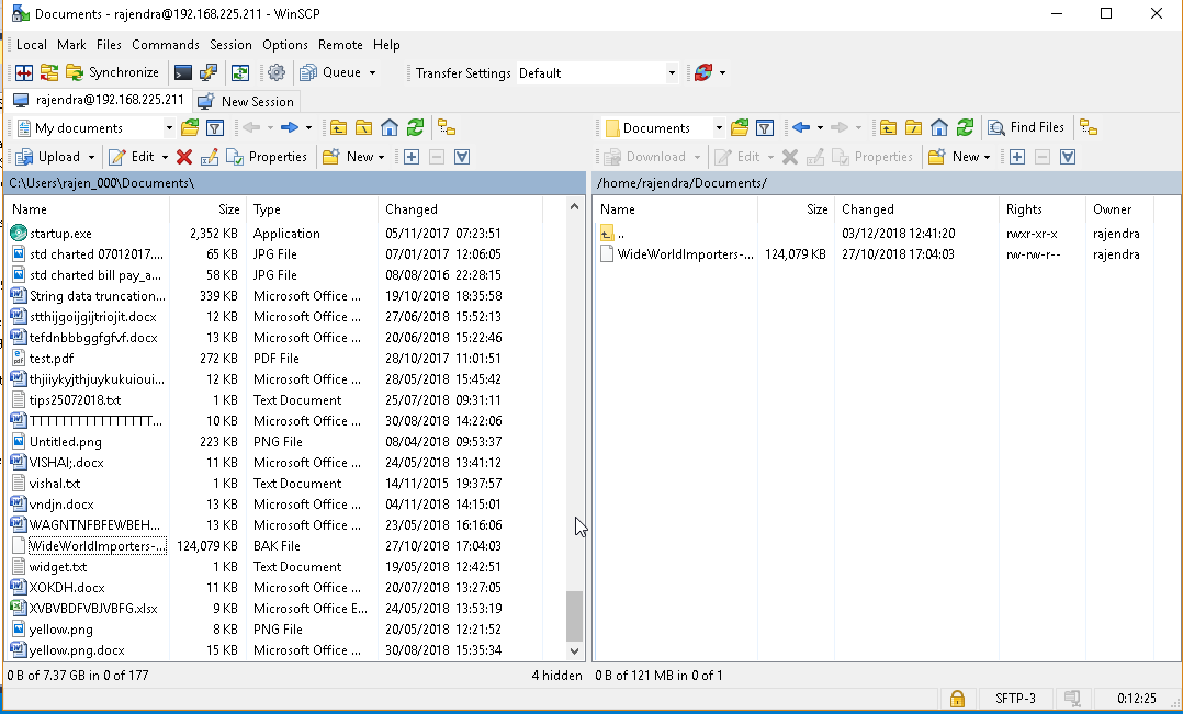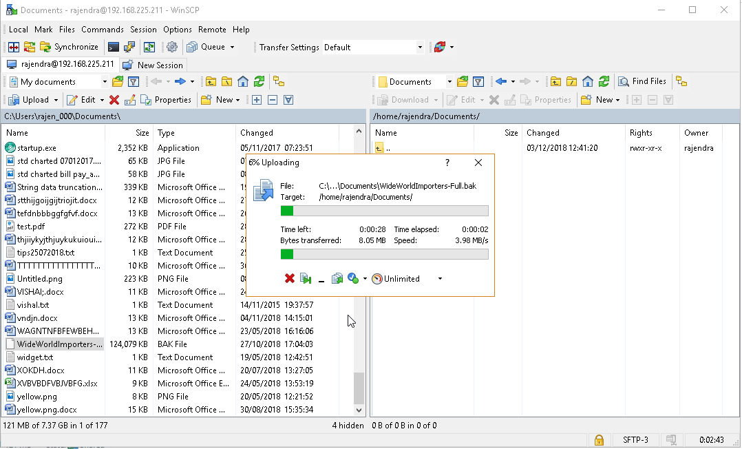 Download WideWorldImporters-Full.bak sample database and transfer it to Ubuntu using the WinSCP.