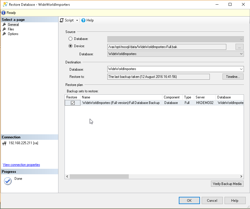 Restore the WideWorldStore database on Ubuntu Linux instance